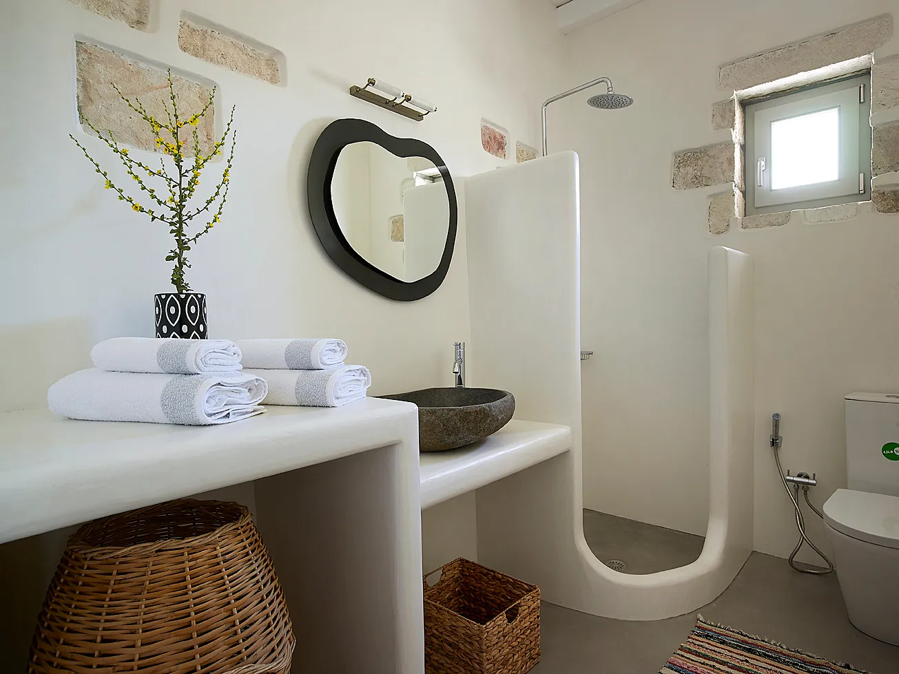 The jewel of Triovasalos welcomes its eminent guests to a new world of unparalleled beauty and luxury. 70 sq.m unsurpassed comfort and austerity, the luxurious Studio Vipera embraces the Cycladic white with its sophisticated lifestyle in an exceptional architectural home.